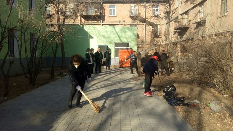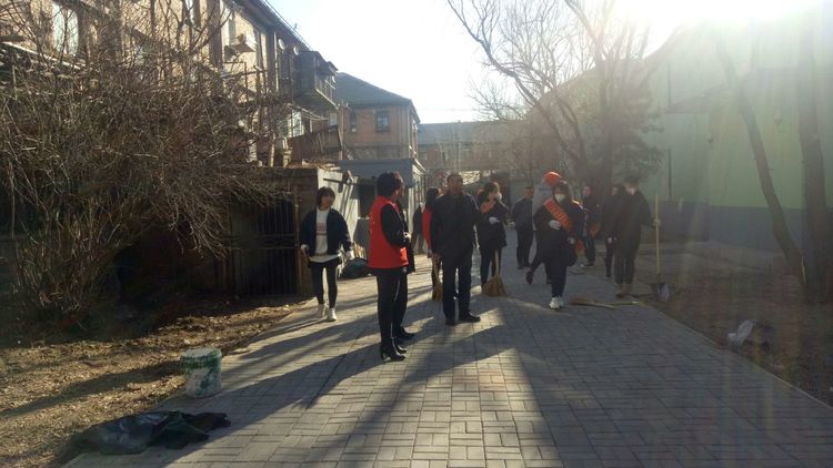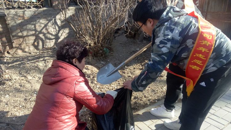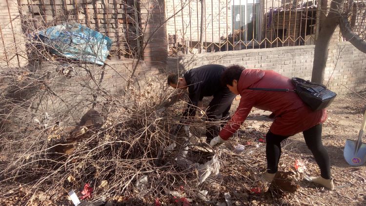 看安馨養老服務中心后院里參加清掃衛生的青年團員志愿們拿著笤帚、鐵鍬、鋸等用具。開始了緊張的忙碌,鋸枯樹枝的,清掃院落的,清倒垃圾的,大家分工合作,經過了一上午的清掃整理,整個院落更加的干凈整潔了。